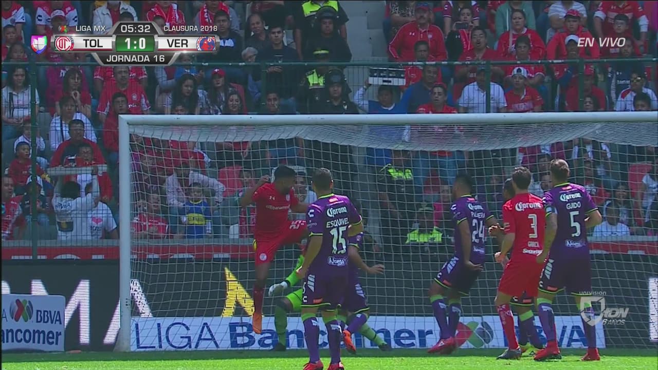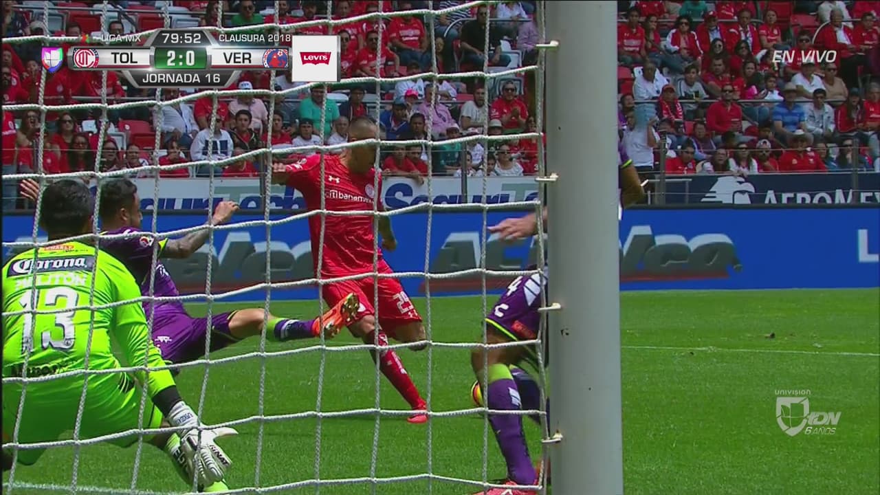El primer gol llegó tras un error de Melitón. Muy rápido en el partido, Toluca pegó luego de una mala salida del guardameta veracruzano que el Pitu Barrientos aprovechó para poner el 1-0.