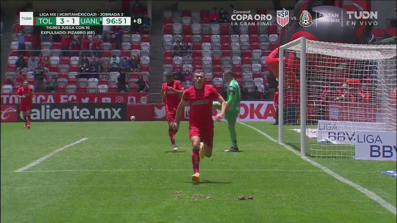 Aunque los de casa lo intentaban, Tigres se defendía muy bien y controlaba a un Toluca al que le costó crear opciones de anotar. Sin embargo, a los 83 minutos, Canelo obtuvo revancha y con una gran media vuelta anotó el 2-1.
