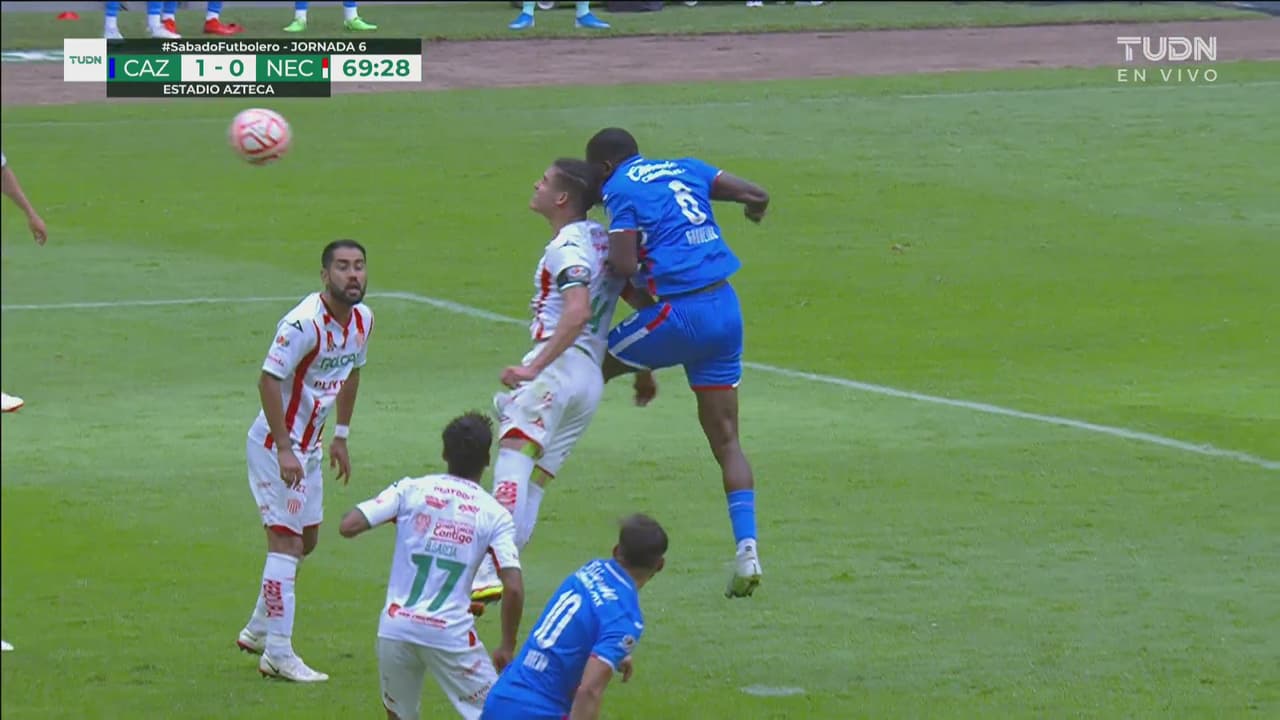 El jugador de Necaxa se lleva la peor parte, tras sangrar utiliza un gorro de natación.