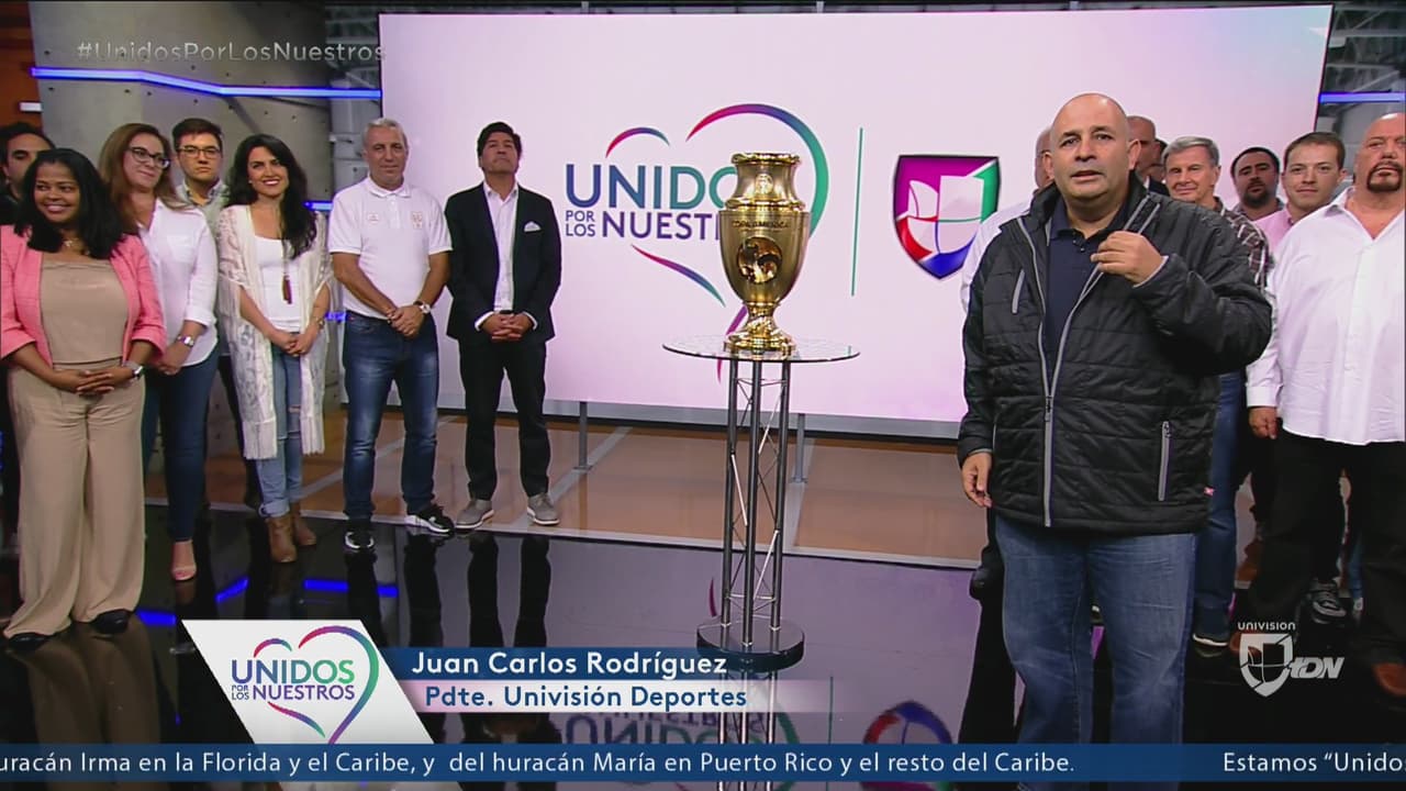 Se generará una sola transmisión para todas las plataformas; todo bajo la producción de Univision Deportes desde Miami. Con 2 horas de previa y 2 horas de posterior a los partidos, iniciando este martes a las 6pm tiempo del Este con dos horas de shows especiales con narradores y analistas de todas estas televisoras juntos invitando a que todos los televidentes donen a la Cruz Roja Internacional y ayuden a la reconstrucción de todas las zonas afectadas por los huracanes y los terremotos.