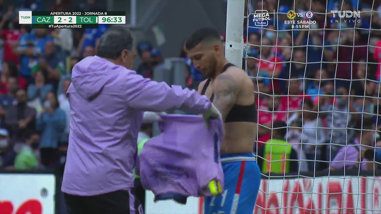 Al defensa de Cruz Azul ya le habían pasado una camiseta de portero, pero curiosamente se la tuvo que cambiar.