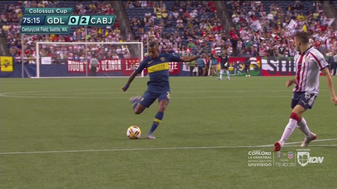 El colombiano lanzó un balón potentísimo que puso a trabajar al espigado arquero de Chivas.