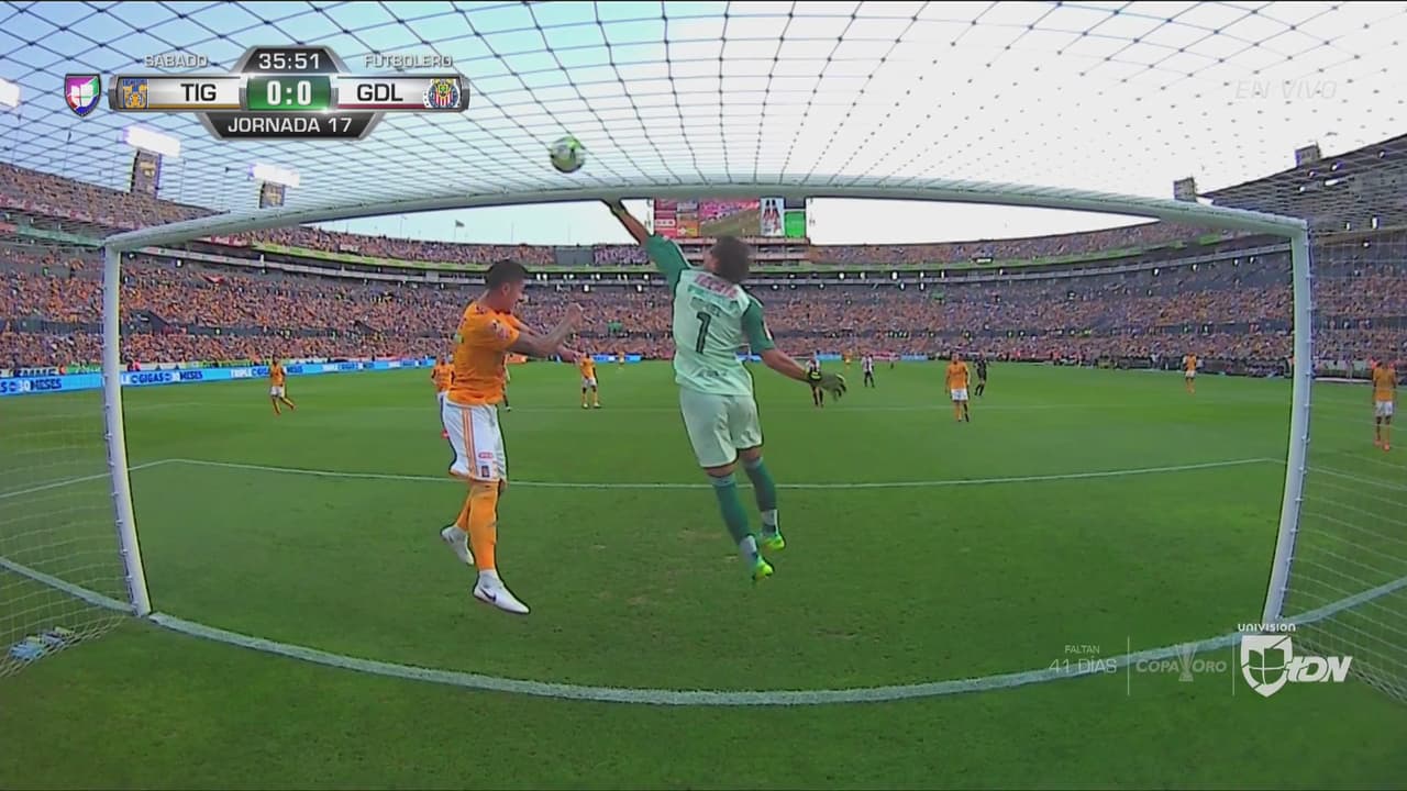 El Rebaño Sagrado estuvo cerca de abrir el marcador en disparo de Walter Sandoval, pero Nahuel Guzmán evitó que el balón se metiera en su arco con un gran salto, minutos después, André-Pierre Gignac, al 38', con certero remate de cabeza y colaboración del arquero Miguel Jiménez puso el 1-0. Fue el gol 102 del francés y se colocó a dos del máximo anotador, Tomás Boy, quien estaba en el banquillo del rival.