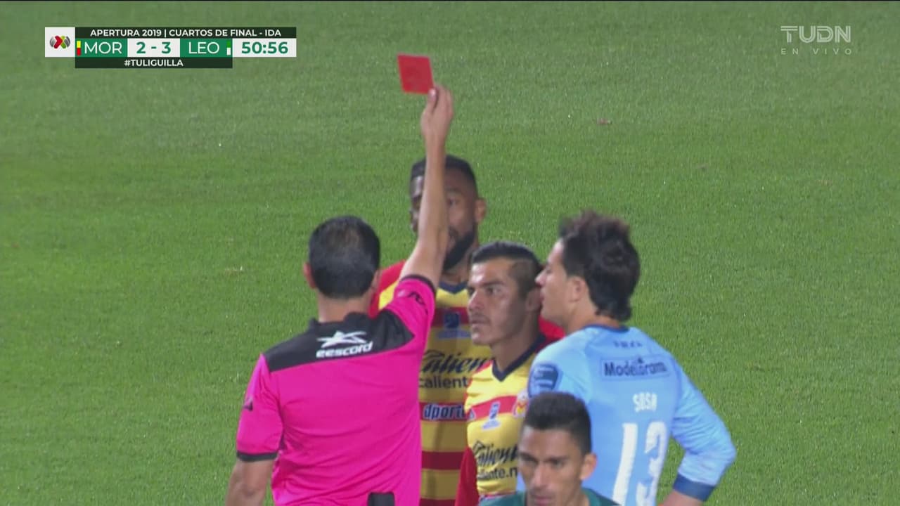 El central del cuadro michoacano ya estaba amonestado y se ganó la segunda amarilla al 51’, por darle en la cara al volante de La Fiera.