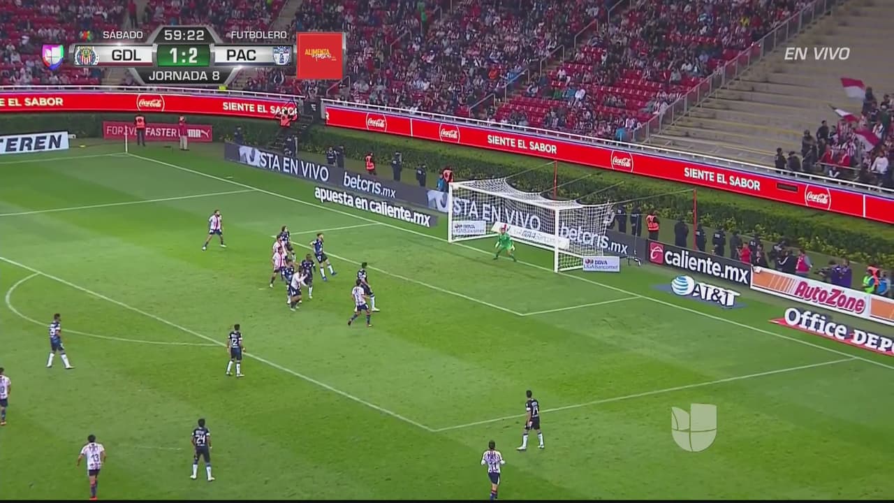 Buen centro por derecha, ‘Chelo’ remató en el área, pero el remate se fue abierto de la portería defendida por Blanco.