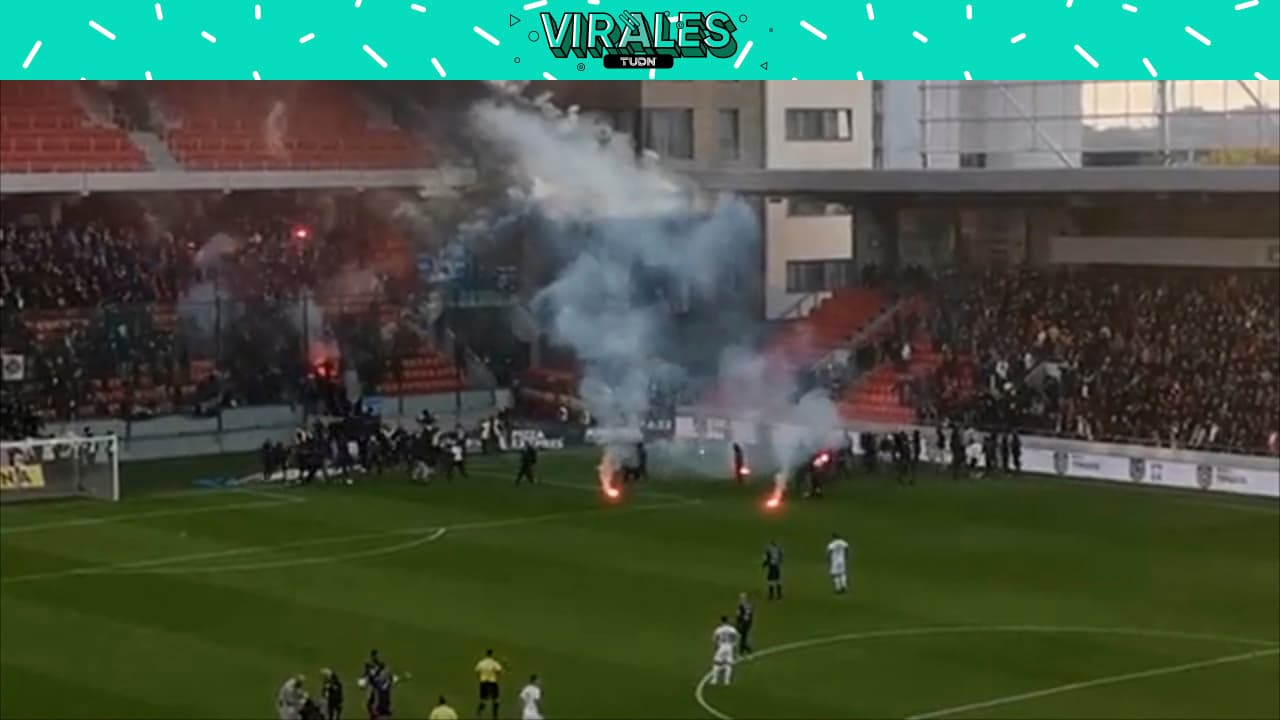 El partido entre el Paris FC y el Olympique Lyon fue suspendido luego de que aficionados del segundo equipo, visitante, agredieran con bengalas a seguidores del conjunto local y de manera posterior invadieran la cancha.