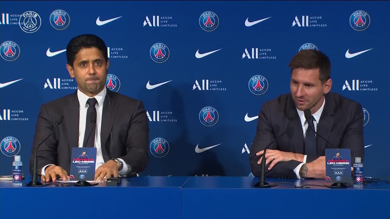 “Hoy es un día histórico para el futbol. Messi tiene seis Balones de Oro, es un mago del futbol. Es espectacular para el PSG lo que representa tener a Messi. Hay un proyecto a conseguir lo que llevamos años persiguiendo.