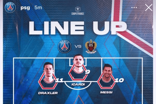 En el juego de la Coupe de France ante Niza de este lunes, el argentino ha saltado de titular con la 10, algo que es raro porque él usa la 30 con el equipo parisino, pero el reglamento no se lo permite.