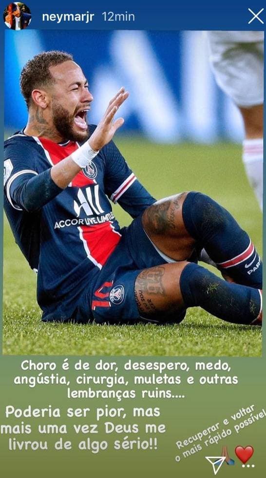 Además, el atacante del PSG reveló que la lesión no es tan grave como se podía esperar en un primer momento: "Podría ser peor pero una vez más Dios me libró de algo serio...", manifestó.