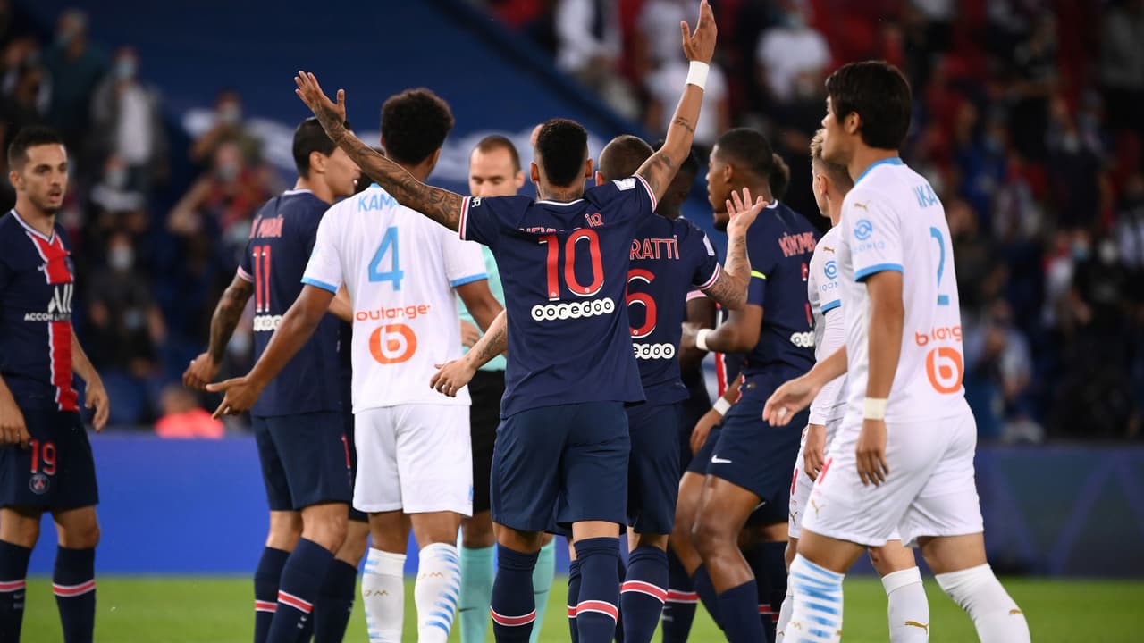 En un minuto, ya en el añadido, cinco futbolistas fueron expulsados del clásico francés, que acabó con la victoria del Olympique Marsella y con la segunda derrota seguida del campeón.