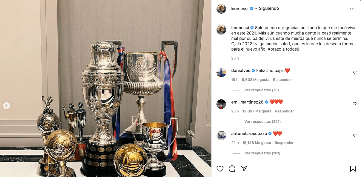Cabe recordar que entre sus logros en 2021 se encuentra la conquista de la Copa América, primer título oficial de la selección argentina desde 1993; además, presumió algunos reconocimientos personales y el título ganado en la Copa del Rey con el FC Barcelona.