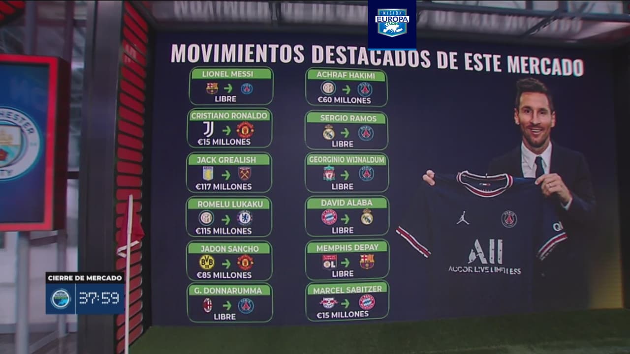 El PSG realizó los mejores movimientos del mercado, pues además de Messi, no tuvo que pagar nada por Sergio Ramos (Real Madrid), Gianluigi Donnarumma (AC Milan) y Georginio Wijnaldum (Liverpool), quienes acabaron contrato con sus exequipos. El conjunto parisino solo gastó 60 millones de euros por Achraf Hakimi (Inter de Milán).