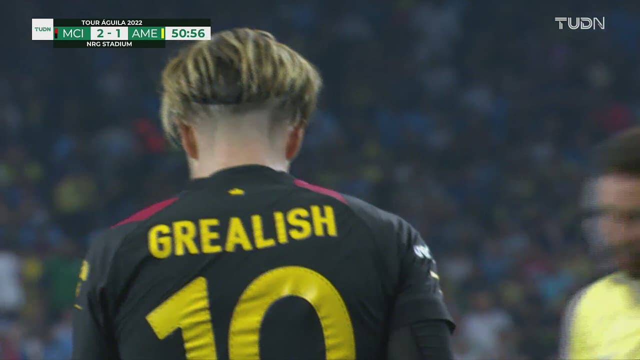 Óscar Jiménez se mandó un atajadón y evitó el gol del delantero del City, Grealish. Se perfiló ante el arquero, quien alcanzó a desviar ante el tiro a quemarropa.