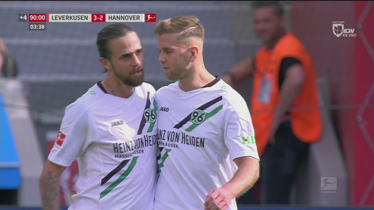 A punto del silbatazo final el Hannover cierra el partido con un 3-2 que deja insatisfechos a los seguidores del Bayern Leverkusen.