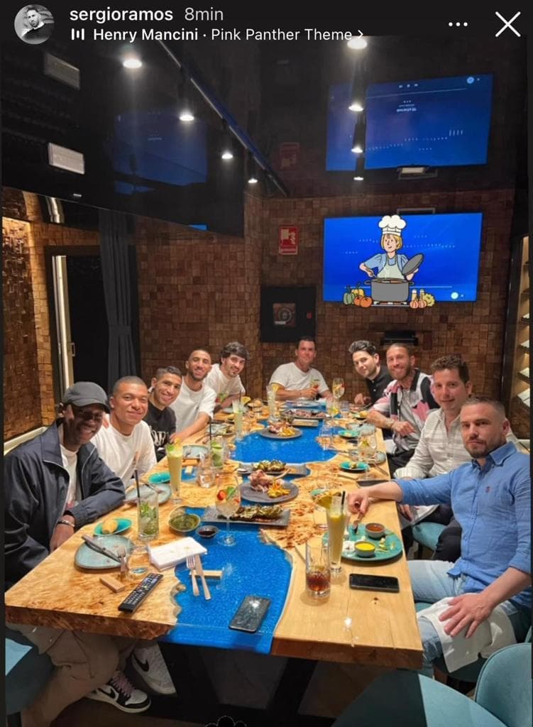 Mbappé fue captado en un restaurante de la capital española junto con Achraf Hakimi en una foto publicada por la Cadena COPE de España.