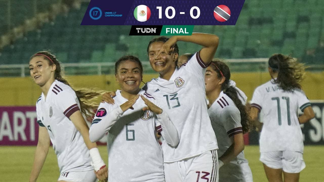 México aplastó por 10-0 a Trinidad y Tobago en el cierre de la Fase de Grupos para terminar con paso perfecto en el Premundial Femenil Sub 17 de la Concacaf y ahora enfrentará a Guyana en Cuartos de Final.