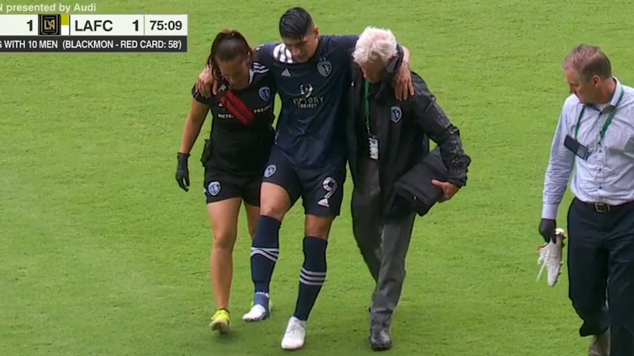 Tras algunos minutos, Pulido tuvo que ser retirado del campo con ayuda del personal médico del Sporting KC, ya que el delantero no podía apoyar su pierna derecha, incluso se le tuvo que retirar el botín.