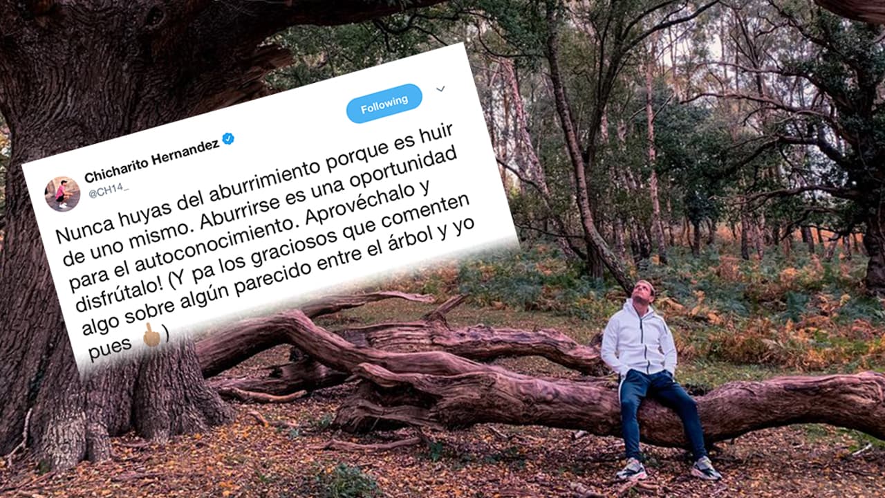 “Nunca huyas del aburrimiento porque es huir de uno mismo. Aburrirse es una oportunidad para el autoconocimiento. Aprovéchalo y disfrútalo! (Y pa los graciosos que comenten algo sobre algún parecido entre el árbol y yo pues)”, escribió Hernández en su cuenta oficial, ilustrando con un emoji del dedo medio.