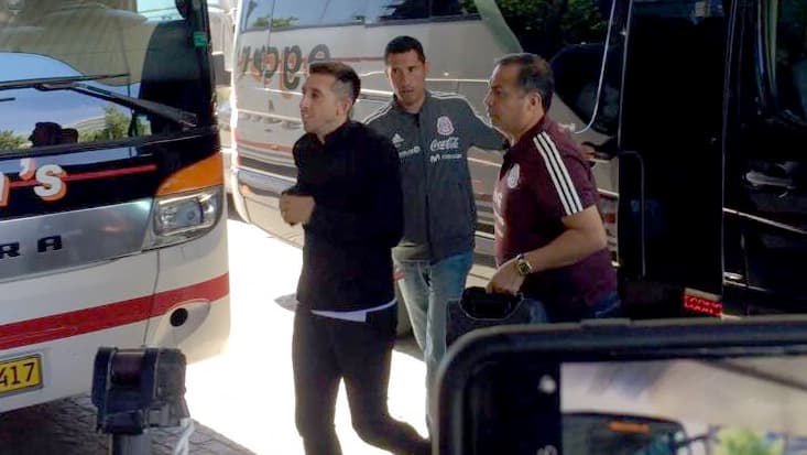El seleccionado mexicano reflejó un semblante tranquilo e incluso saludó un par de personas en su camino de la camioneta en la que llegó a la puerta del hotel, aunque no quiso firmar autógrafos a un par de aficionados que estaban en el hotel.
