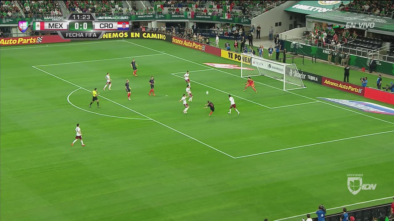 Tras una gran jugada de Rakitic, Kramaric recibió el balón y trató de acomodar el balón al palo más lejano del portero mexicano 'Memo' Ochoa. Croacia avisó en el AT&T Stadium.