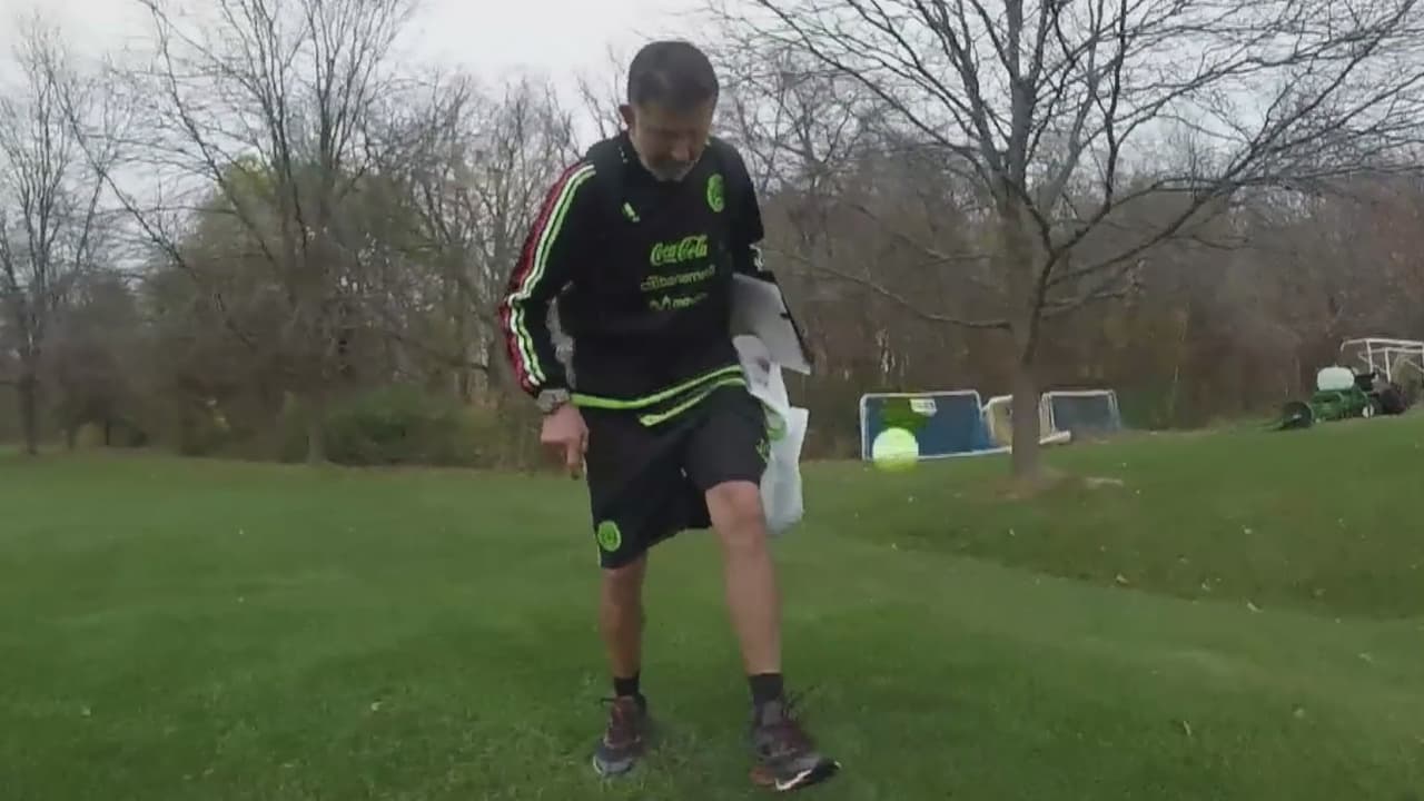 Ana Caty Hernández, en el segundo día de prácticas en Columbus, le llevó al Tri un desafío de habilidad: hacer dominadas con balones de tenis y fútbol americano. Osorio también la rompió.