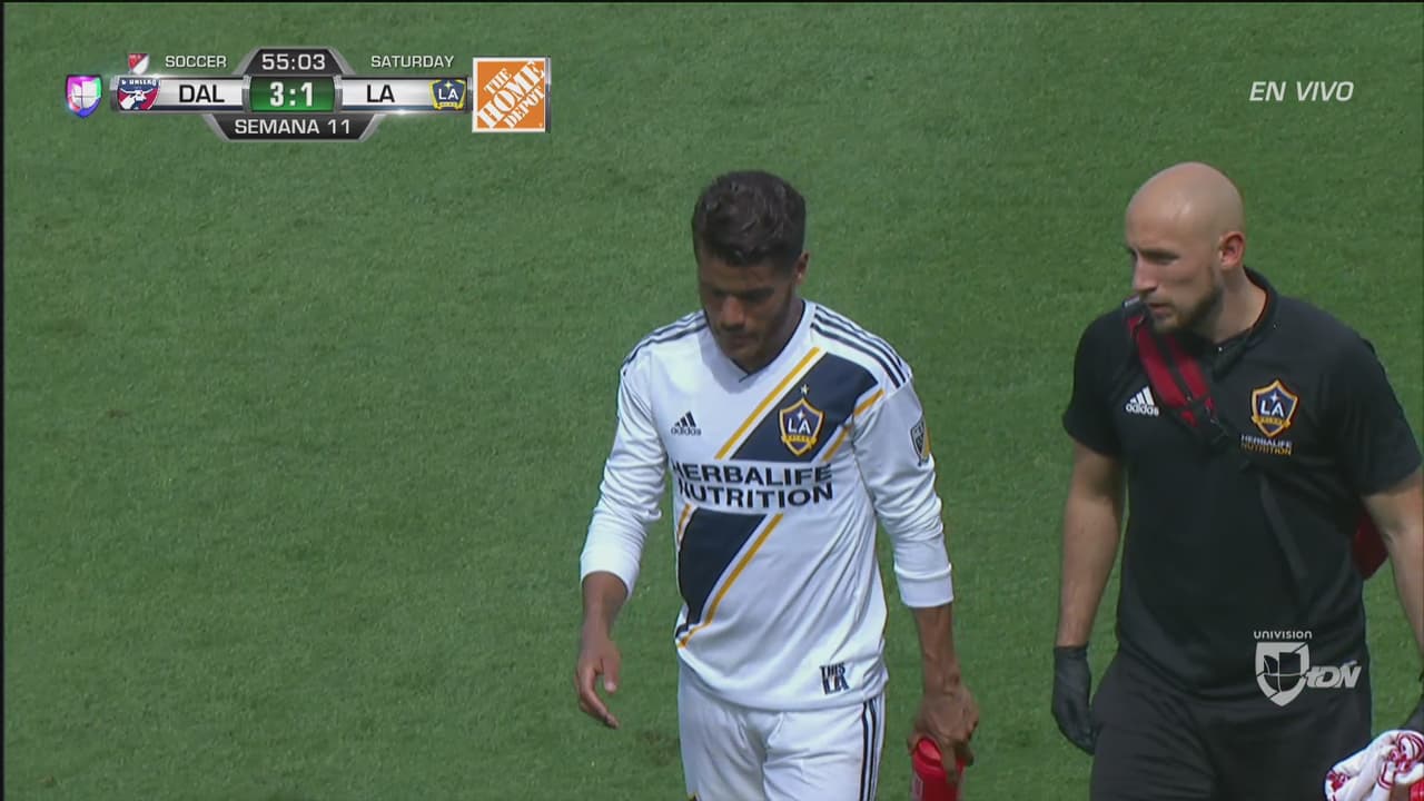 El volante de contención recibió un duro golpe en la pierna derecha después de pelear un balón dividido. El menor de los Dos Santos continuó en el partido, pero minutos después pidió su cambio.