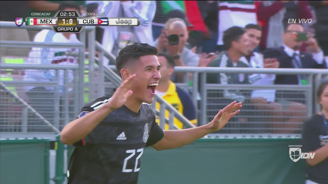 Al minuto con 57 segundos anotó el primer gol de México en la Copa Oro 2019, empujó el esférico después de que éste pegó en el poste y con ello hizo el gol más rápido de México en la historia del torneo.