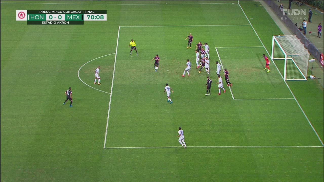 La selección mexicana respondió perforando las redes hondureñas, pero el asistente levantó el banderín por fuera de lugar de Cervantes, quien había aprovechado un rebote tras el lance de Alex Güity ante un remate de JJ Macías al 69’.