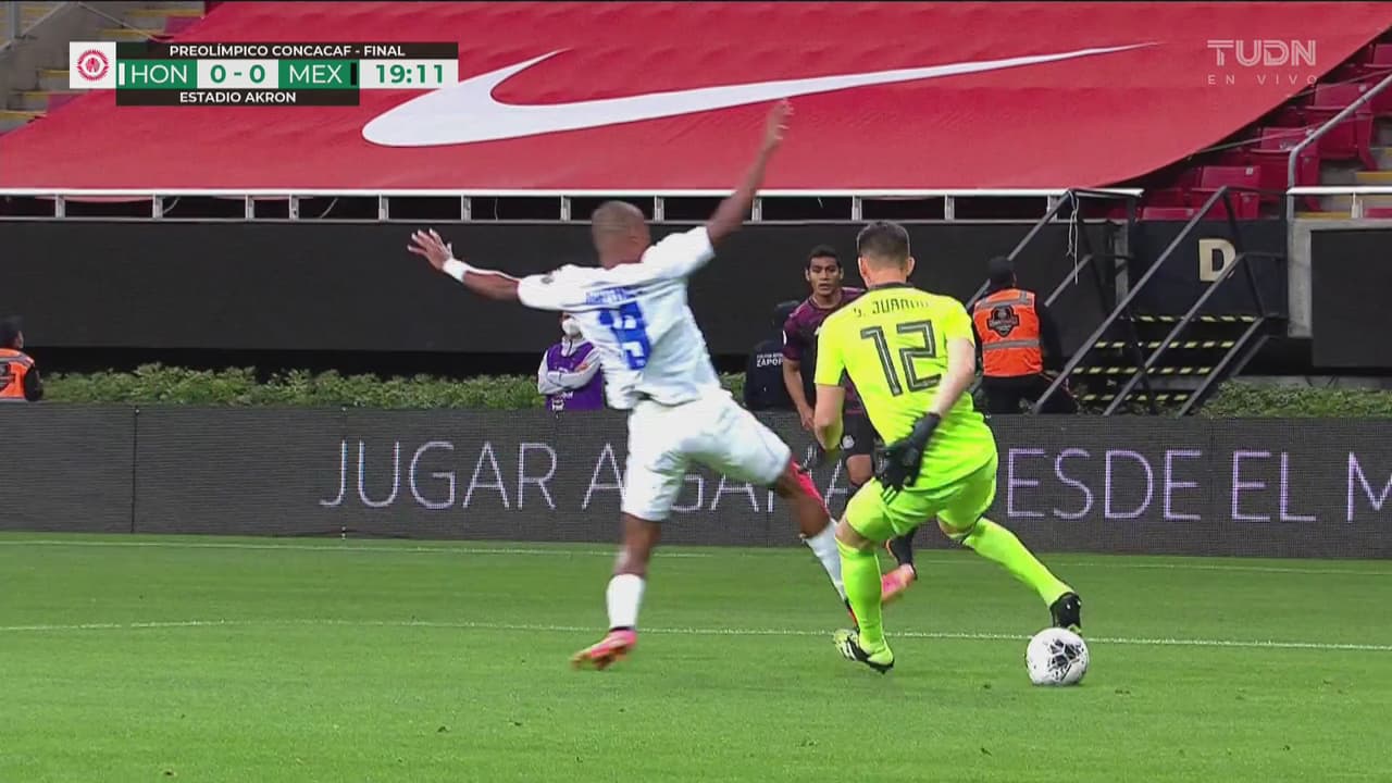 Antes de que llegara el gol de Honduras, el portero de Cruz Azul atajó tres disparos peligrosos. El primero desde fuera del área por parte de Luis Palma; el segundo en el contrarremate de Joseph Rosales; y el tercero con un tiro raso de José Reyes que resolvió con espectaculares reflejos.