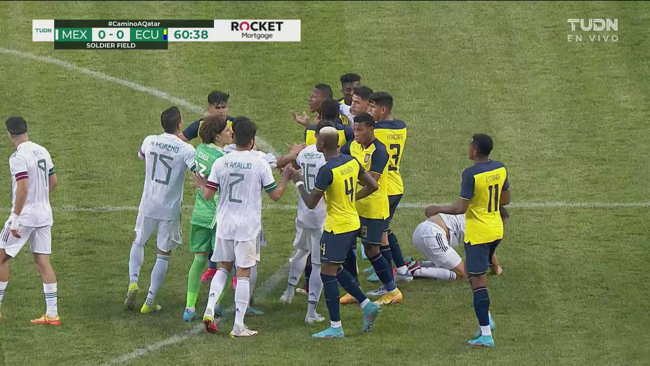 Ecuador quiso reaccionar y lo hizo en una jugada en la que robaraon dentro del área mexicana, pero con falta, y aunque el balón se fue al fondo de la portería, ya la jugada estaba anulada.
