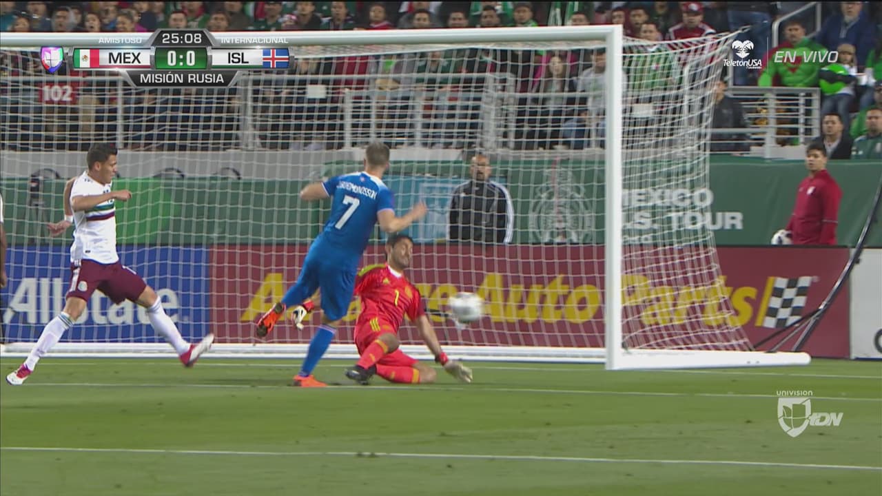 Cuando el Tri pasaba sus momentos más críticos llegó un tiro libre que el 10 solventó como tal al sacar un derechazo que superó la barrera y se metió a la portería pese a la estirada del arquero Rúnarsson.
