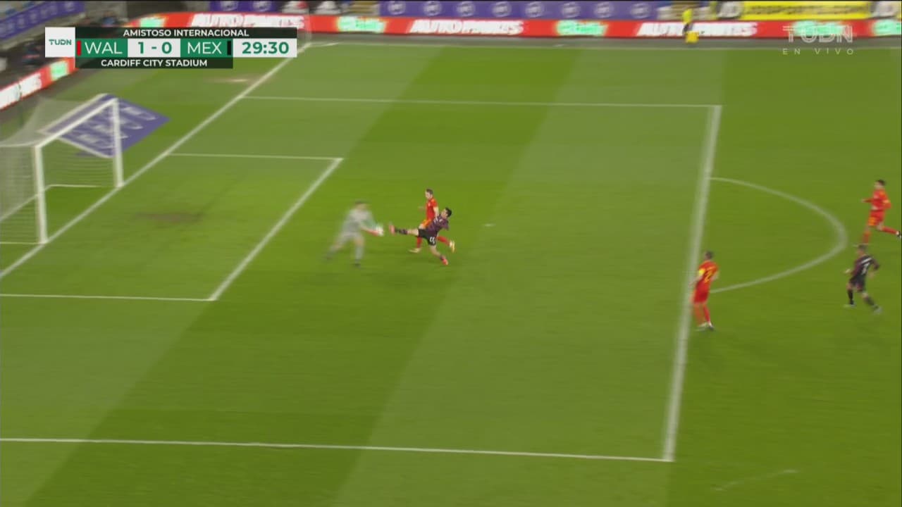Héctor Herrera filtró largo para Hirving, quien se quedó a muy cerca de conectar el balón al 30’.