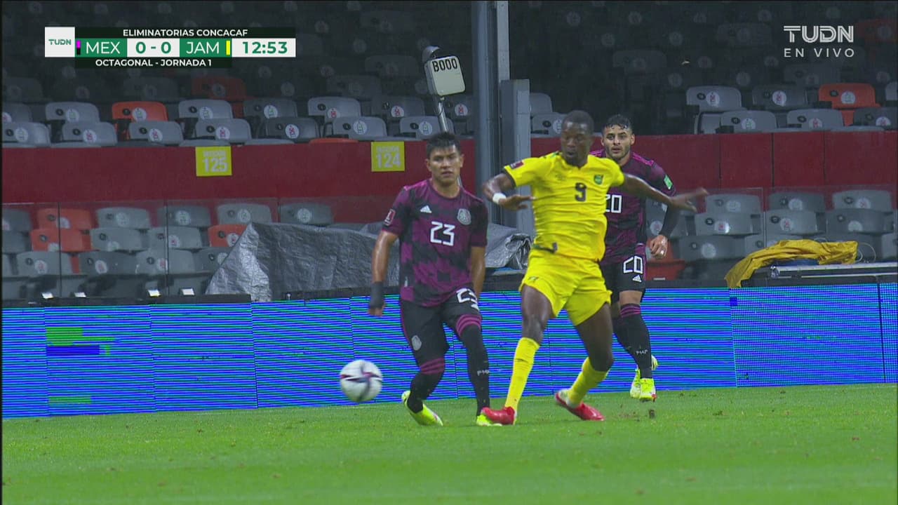 El mexicano ya se había desprendido del balón cuando el de Jamaica llegó a darle en el pie al minuto 13.