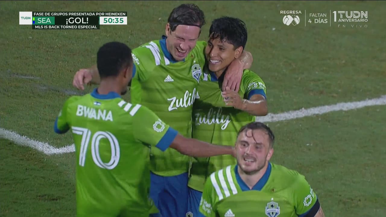El delantero peruano del Sounders cazó la pelota a milímetros del arco, luego del cabezazo cruzado, desde el primer palo, de Handwalla Bwana.