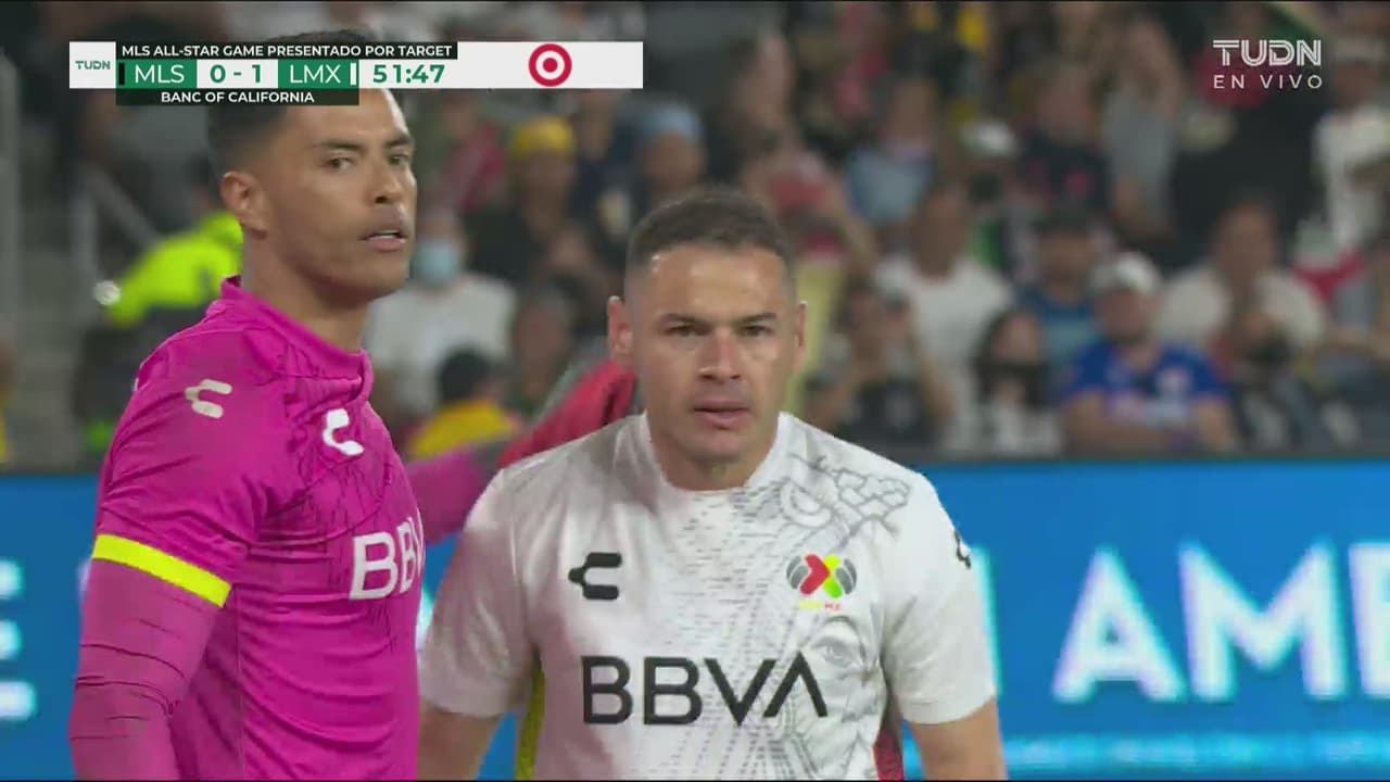 El de la MLS tiene medida la pelota, pero el central se cruza de manera perfecta, al 52'.