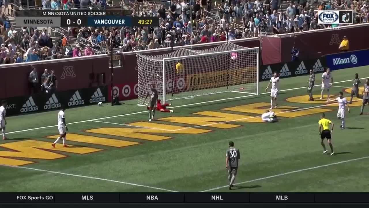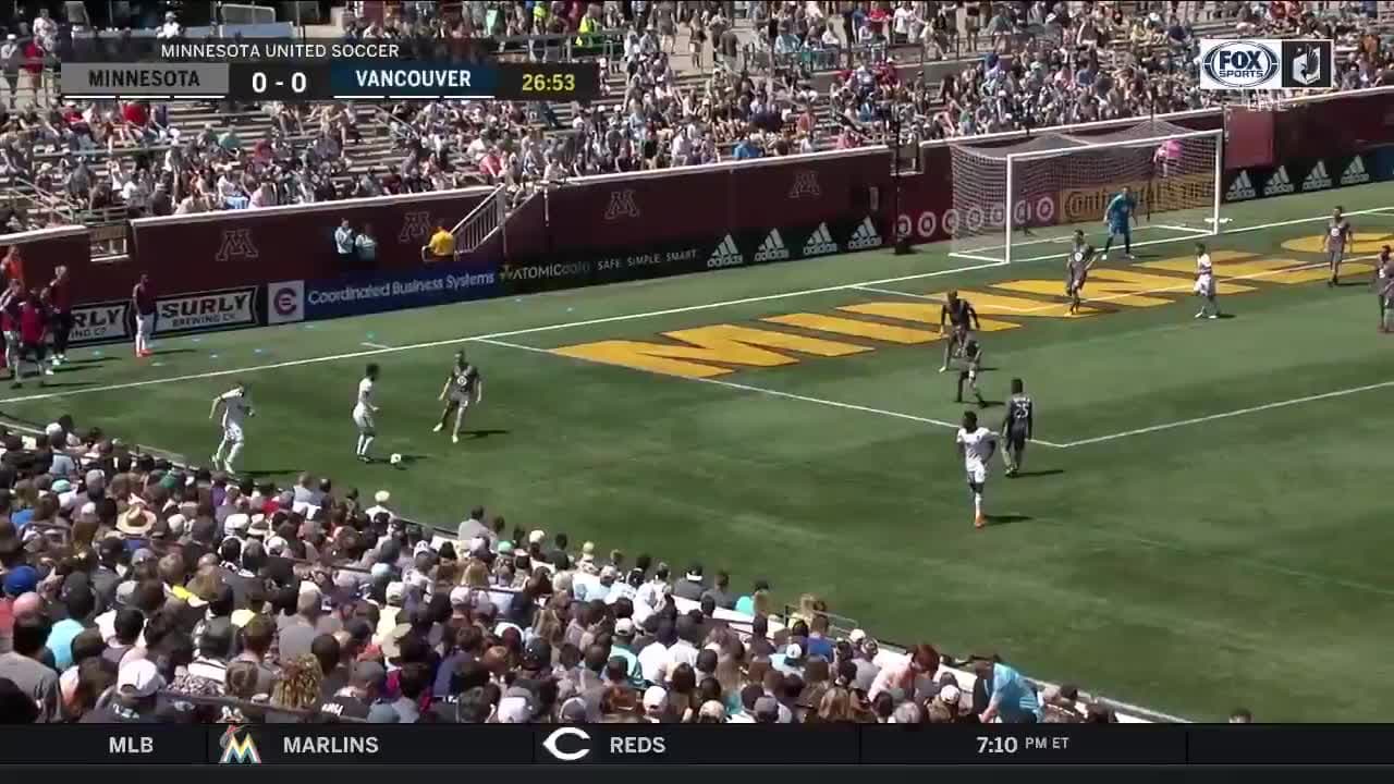 Video Se duerme el defensa y Miguel Ibarra aprovecha para marcar el primero, Minnesota 1-0 Vancouver
