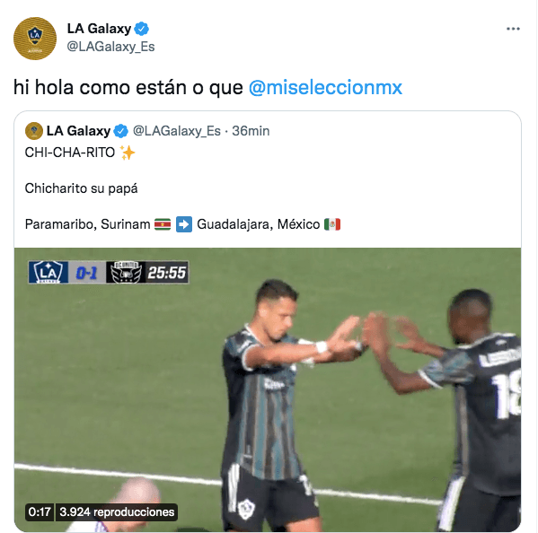 En las redes sociales en español del club angelino incluso se dio un aviso al Tricolor acerca de la anotación de Javier Hernández: "Hi, hola, cómo están o qué @miseleccionmx", tuiteó LA Galaxy tras el gol.