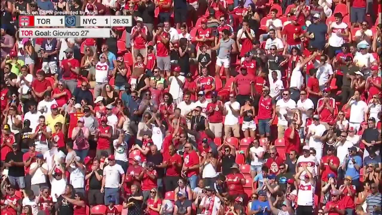 Toronto tuvo paciencia para evitar una mayor ofensiva del visitante. Una buena tocata permitió a Giovinco empatar la contienda con un remate rasante poco antes de la media hora.
