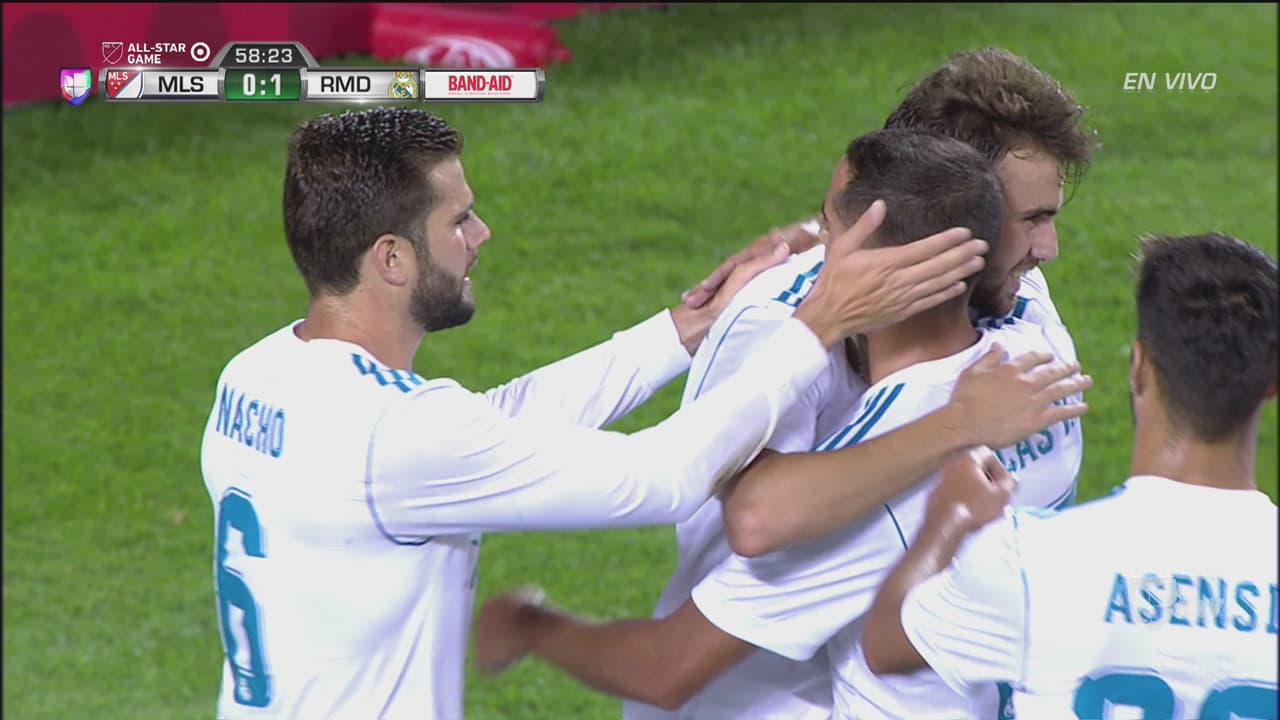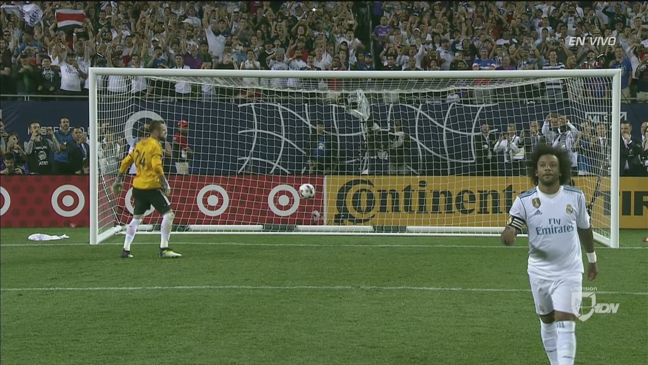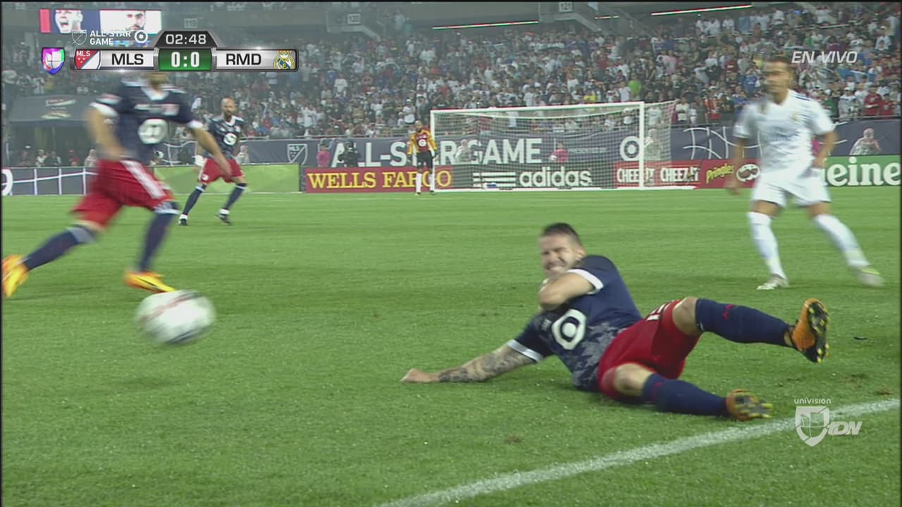 Luca Zidane le detuvo el primer disparo de las Estrellas a Dwyer y Dos Santos estrelló el segundo en el travesaño. Diego Valeri y el seleccionado paraguayo Miguel Almirón anotaron por las Estrellas, pero el Madrid convirtió todos sus cobros en los pies de Benzema, Bale, Kovacic y Marcelo.