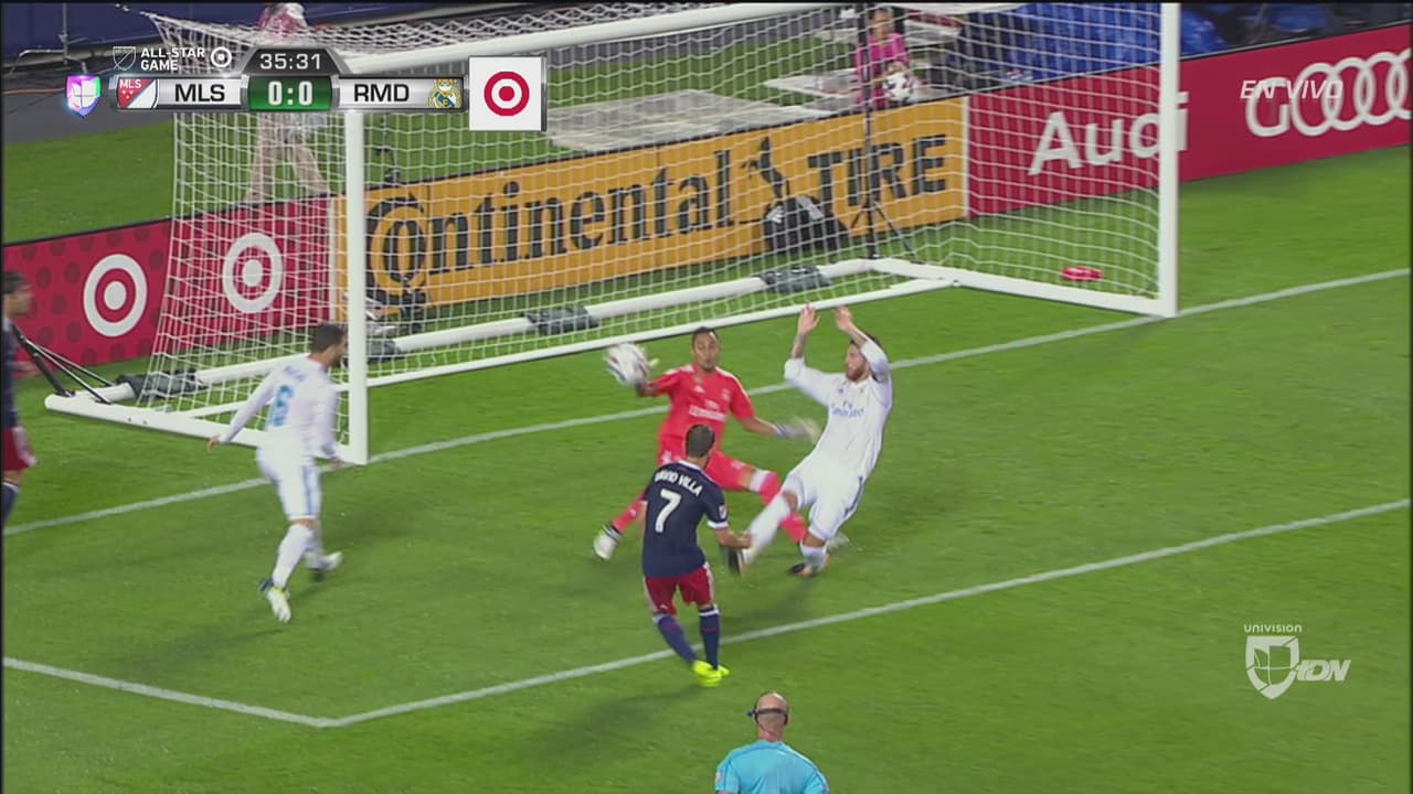 Por su parte, el costarricense salvó la más clara de las Estrellas de la MLS en el primer tiempo, cuando Kaká y David Villa se juntaron dentro del área rival. El delantero español y capitán del New York City FC sacó un remate a quemarropa y de primera intención que Navas alcanzó a desviar milagrosamente con su mano derecha.