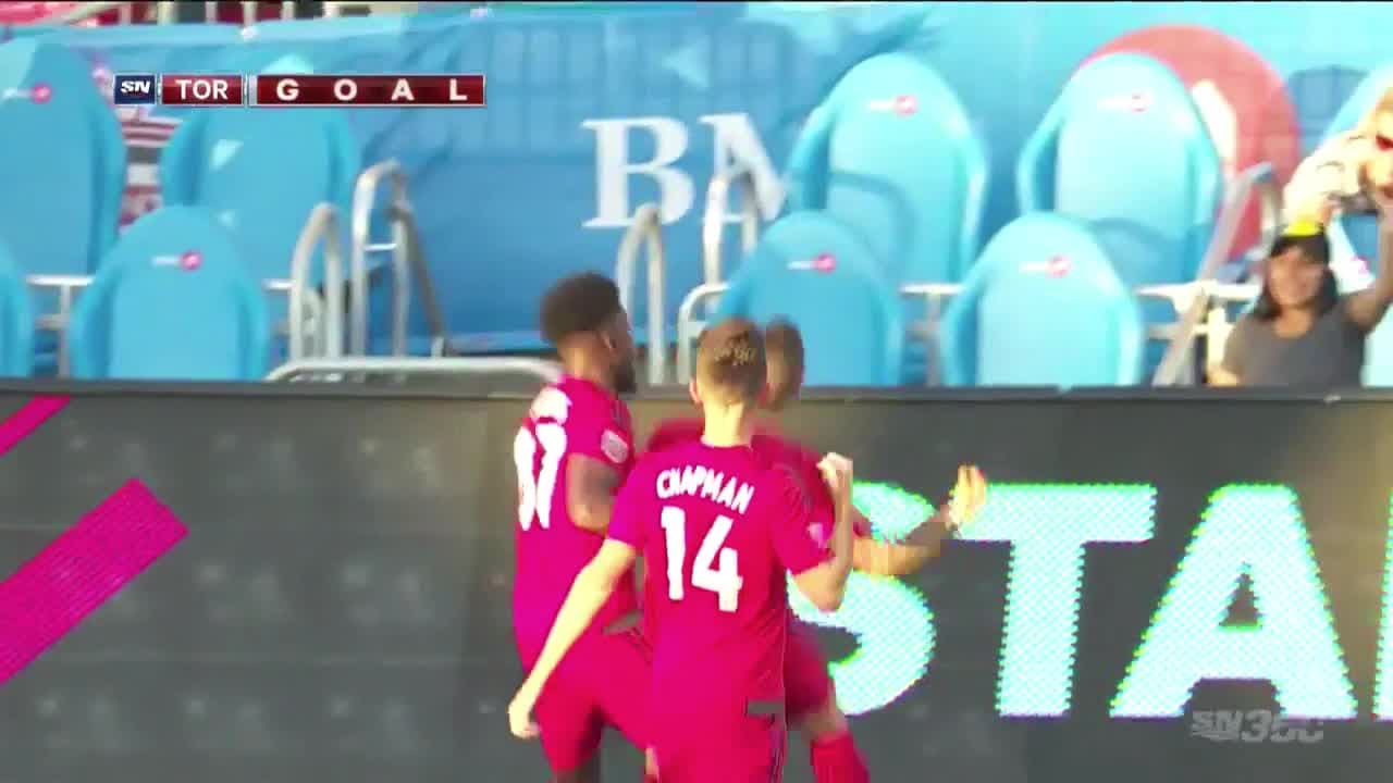 A los 20 minutos tras una confusa jugada de tiros y remates a la salida de un tiro de esquina, el balón le quedó a Giovinco quien desde la banda derecha soltó un zapatazo que fue a tocar el fondo de la red de Bobby Shuttleworth, para el 1-0. "La Hormiga Atómica" puso adelante 2-0 a Toronto tras tomar un balón desde la esquina del área grande y la transportó con la mirada hacia el ángulo superior izquierdo, colgando al portero Shuttleworth.