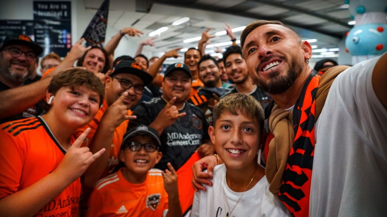 El mediocampista Héctor Herrera, refuerzo mexicano del Houston Dynamo, recibió una calurosa bienvenida por parte de los aficionados a su llegada al aeropuerto de la ciudad texana para incorporarse a la actividad con el equipo de la MLS.