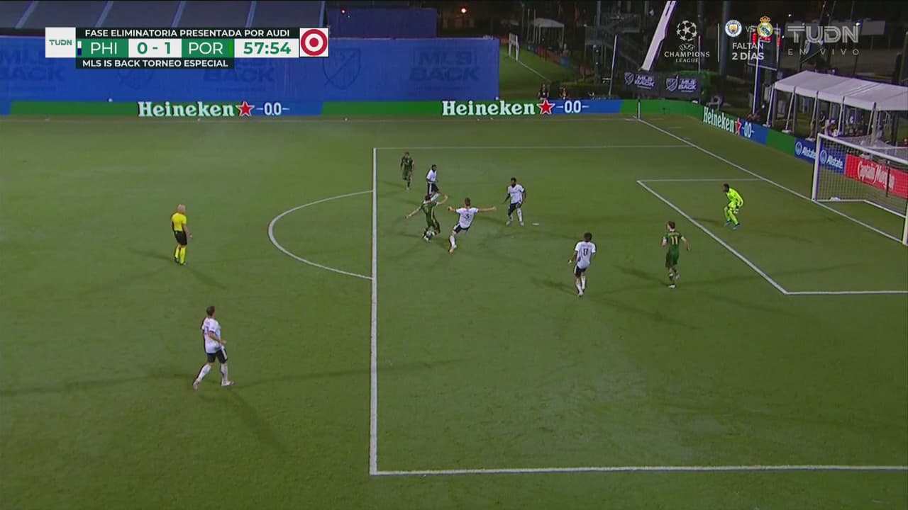 El delantero polaco del Timbers encaró a su marcador, le hizo un 'túnel' y descargó el balón en el argentino, que sacó un tiro suave a las manos del portero.