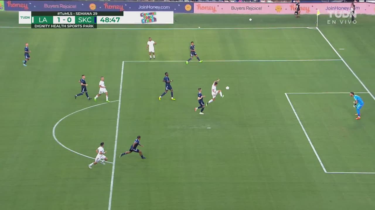 Centro por izquierda que el mexicano intentó mandar a las redes, pero no le dio dirección de gol al 49’.