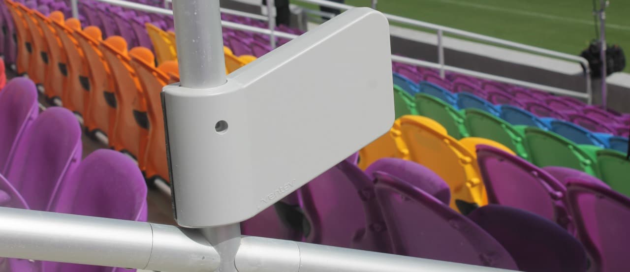 Los puntos de conectividad podrán ser notados por los aficionados en pequeños paneles grises anexos a las barandas de los pasamanos en las tribunas.