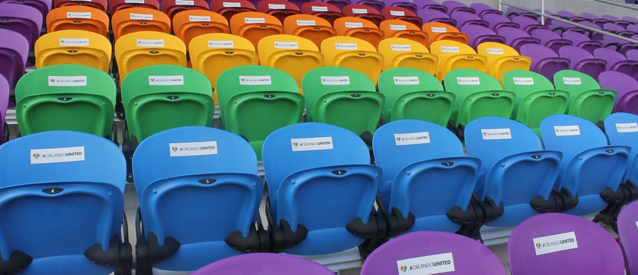 El colorido y sentido homenaje se ubicó en el nivel inferior del West Stand, en seis filas. En total son ocho sillas rojas, naranja, amarilla, verde y azul, además de nueve en morado. Todas con la inscripción “Orlando United” acompañada de un arco iris y un corazón como símbolo de equidad e inclusion.