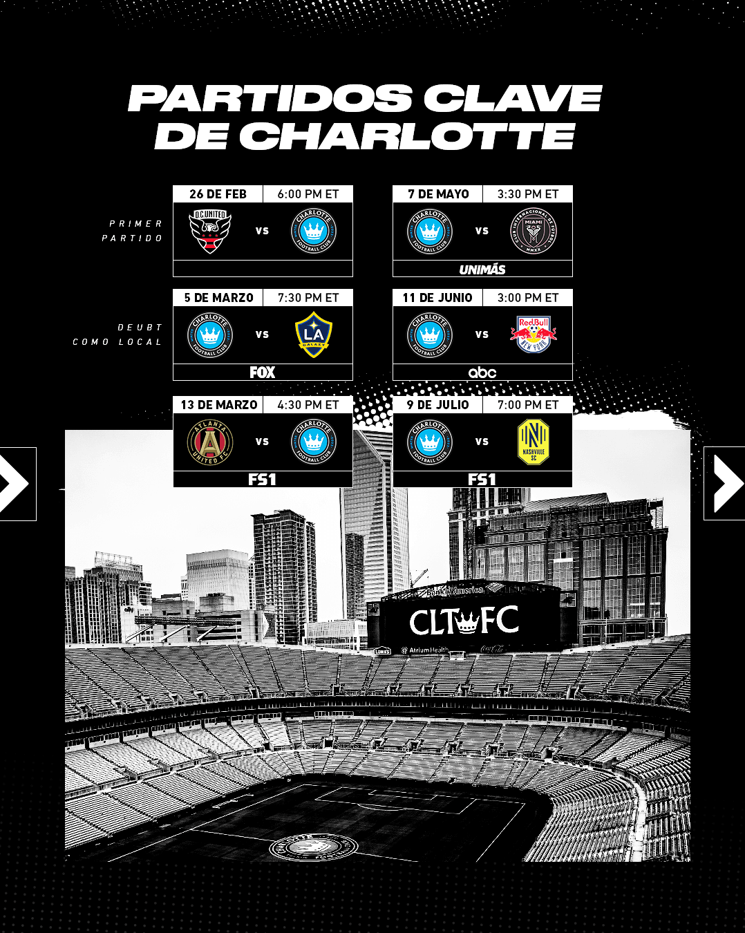 El nuevo club abrirá su temporada inaugural el 26 de febrero frente a D.C. United en el Audi Field, y se estrenará como local frente a sus seguidores el 5 de marzo en el Bank of America Stadium, contra LA Galaxy (7:30 PM, FOX/FOX Deportes) ante una multitud de cerca de 74 mil aficionados. Esa cifra instalaría un nuevo récord de asistencia en un partido de la MLS, rompiendo la marca establecuda en 3 de agosto de 2019 por Atlanta United FC, con 72.548 aficionados en el Mercedes-Benz Stadium.