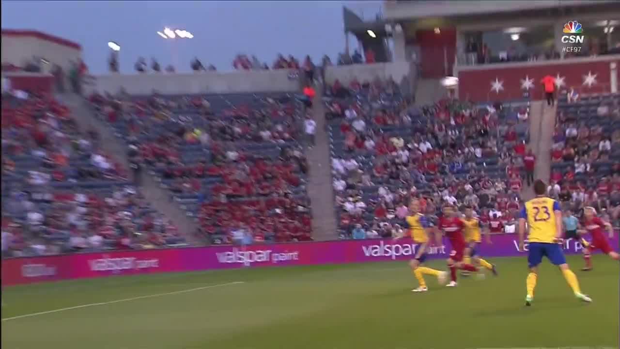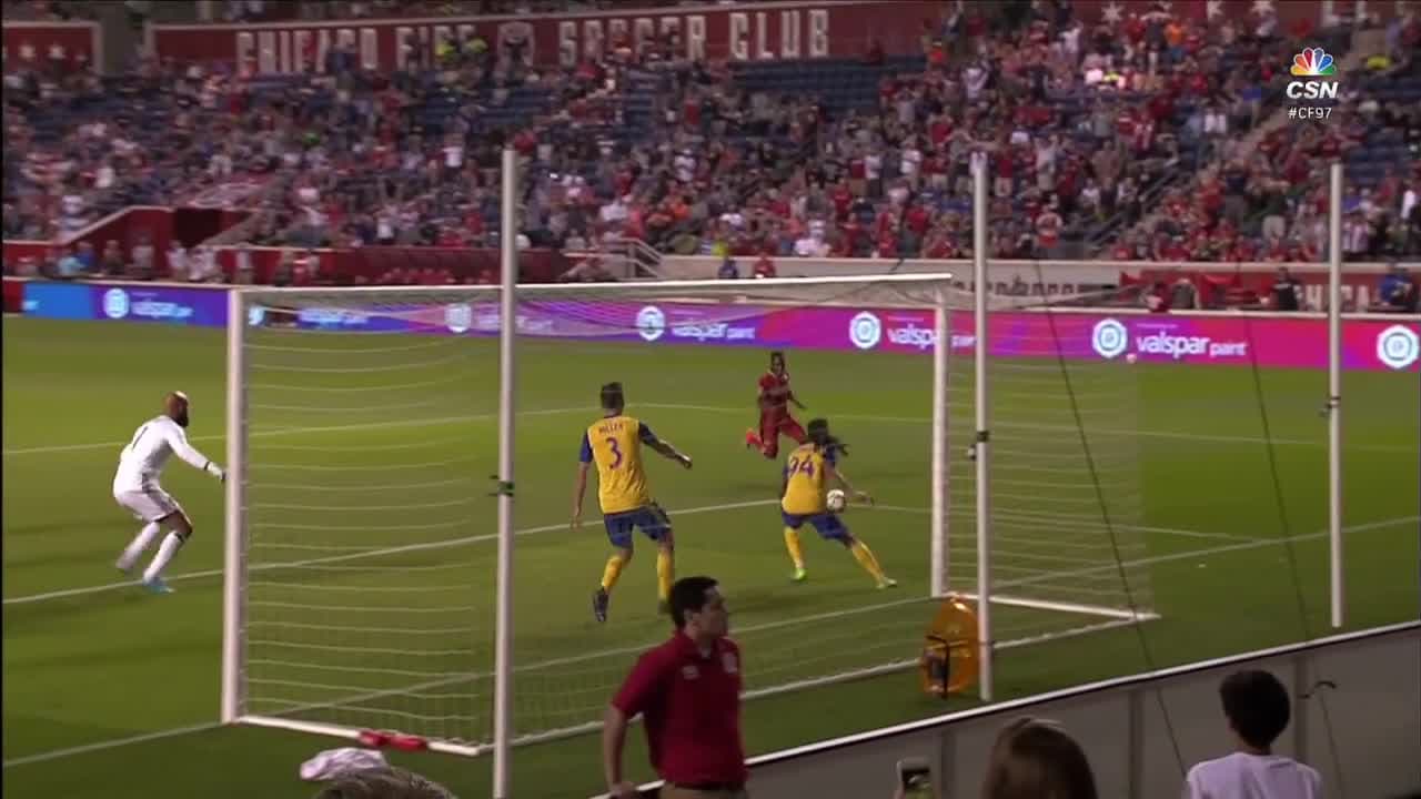 Nikolic abrió el marcador del Toyota Park y de su cuenta personal al minuto 15, metiendo un cabezazo colocado al poste que venció la estirada del meta Tim Howard.