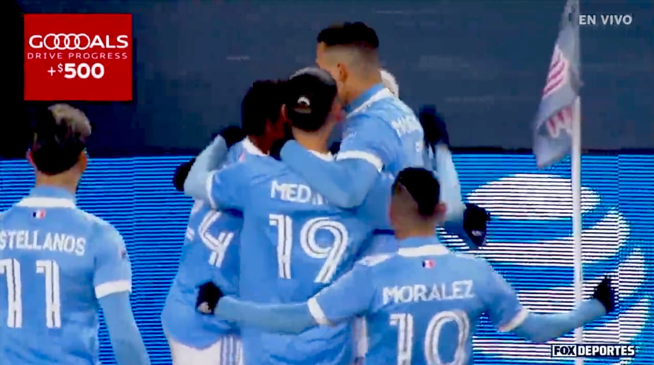 Los Citizens abrieron el marcador con una jugada en la que el uruguayo Santiago Rodríguez ayudo a gestar por izquierda. Le dieron toda la vuelta, para que culminara con un centro de Tayvon Gray por derecha al que Maxi Morález no pudo llegar, pero que el charrúa estuvo atento para de primera intención mandar guardar.