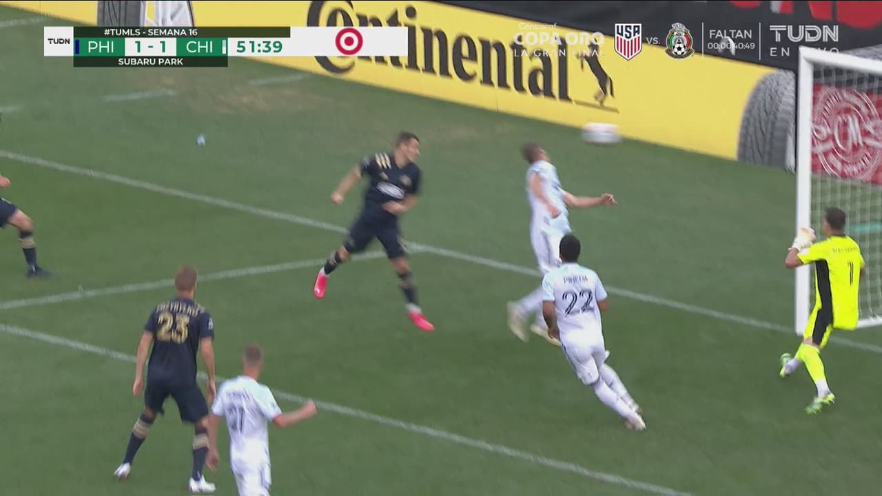 El centro por la derecha fue perfecto, pero el cabezazo pasó por un costado al 51’.